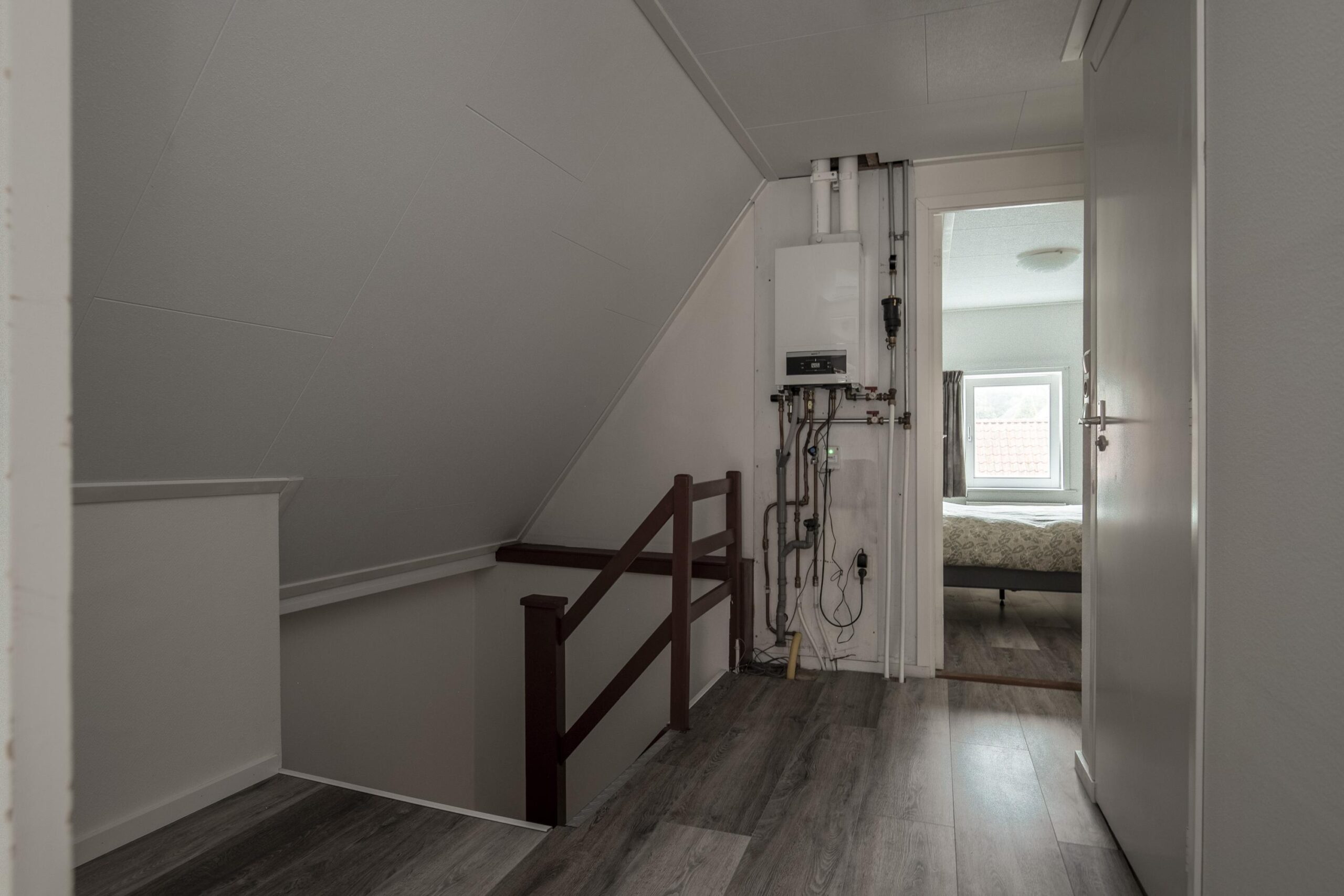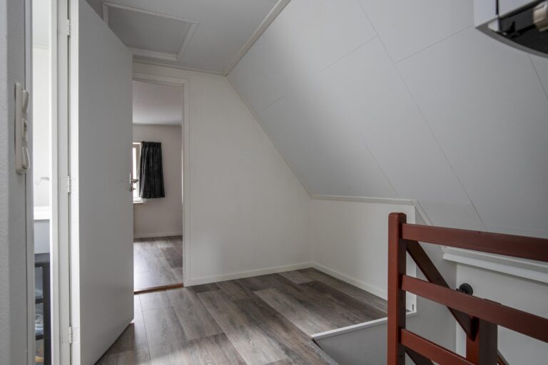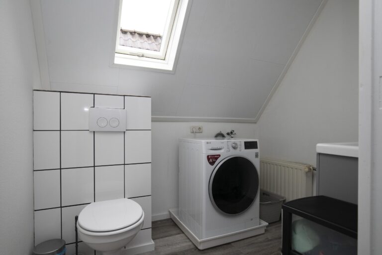 Op de eerste verdieping vind je twee fijne slaapkamers en een extra ruimte met toilet en wasmachineaansluiting. Wil je de badkamer liever boven? Dat is mogelijk! De tweede verdieping biedt extra bergruimte – ideaal voor koffers en seizoensspullen.