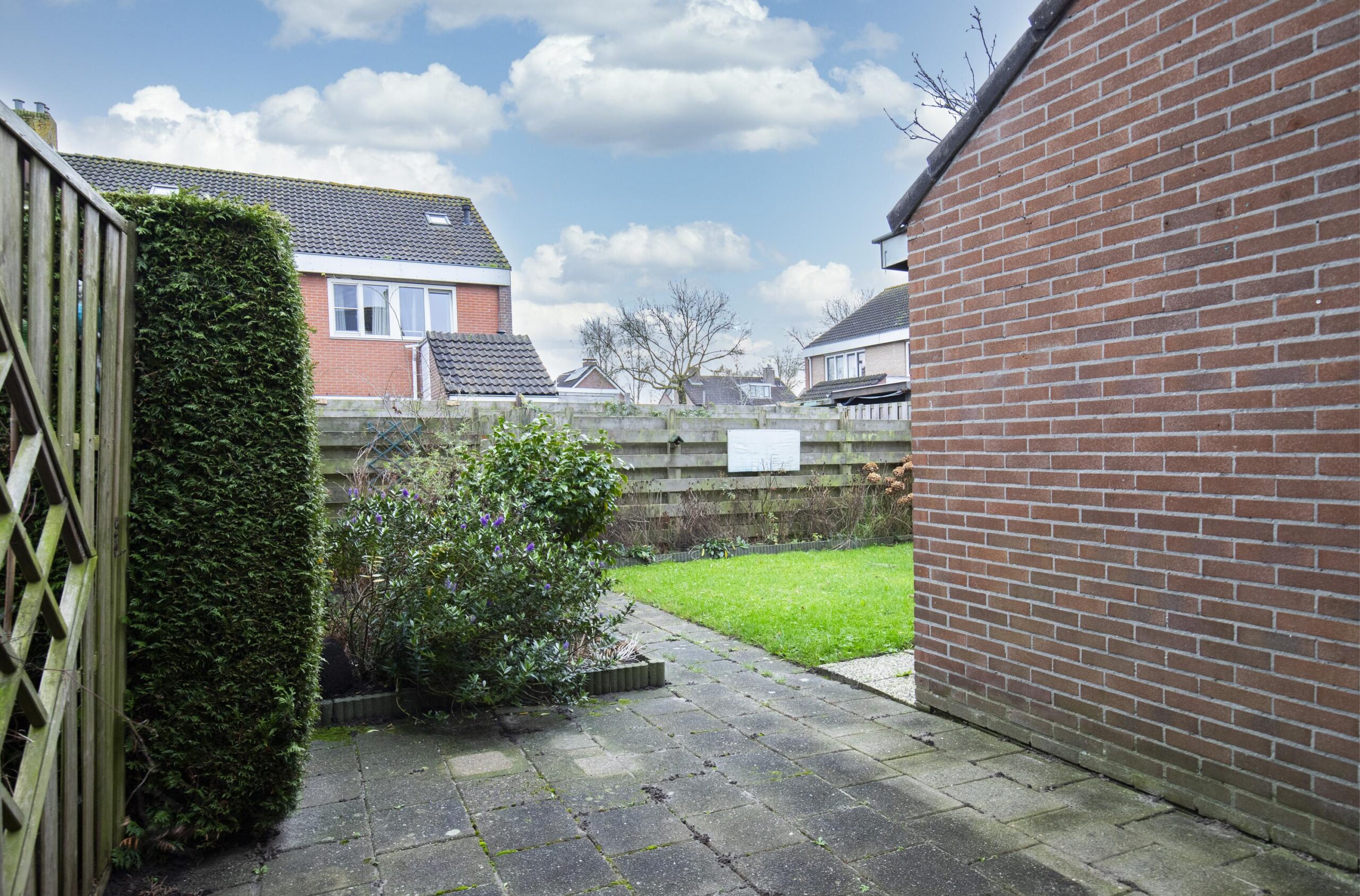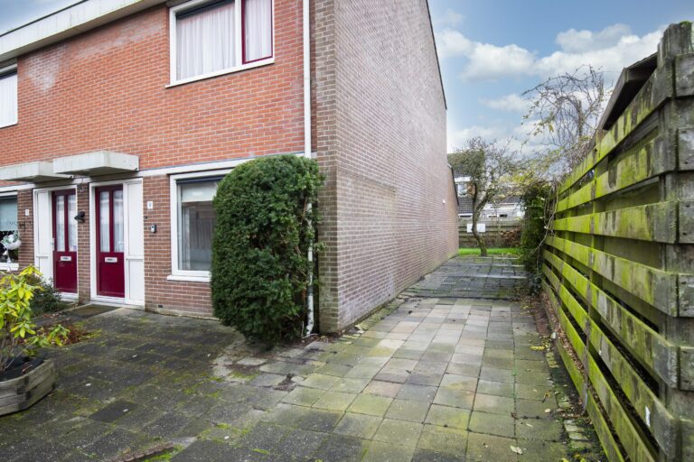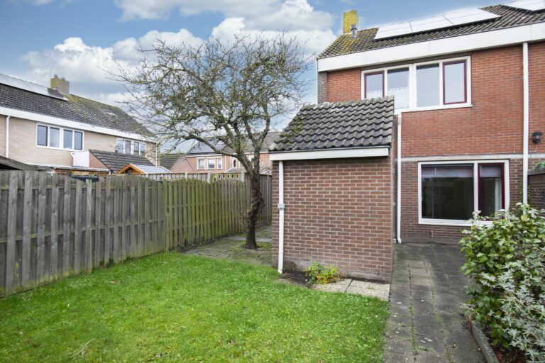 Buiten beschikt de woning over een standaard aangelegde voor-, zij- en achtertuin met achterom. De hoofdtuin is gunstig gelegen op het zuiden, waardoor je hier optimaal van de zon kunt genieten.