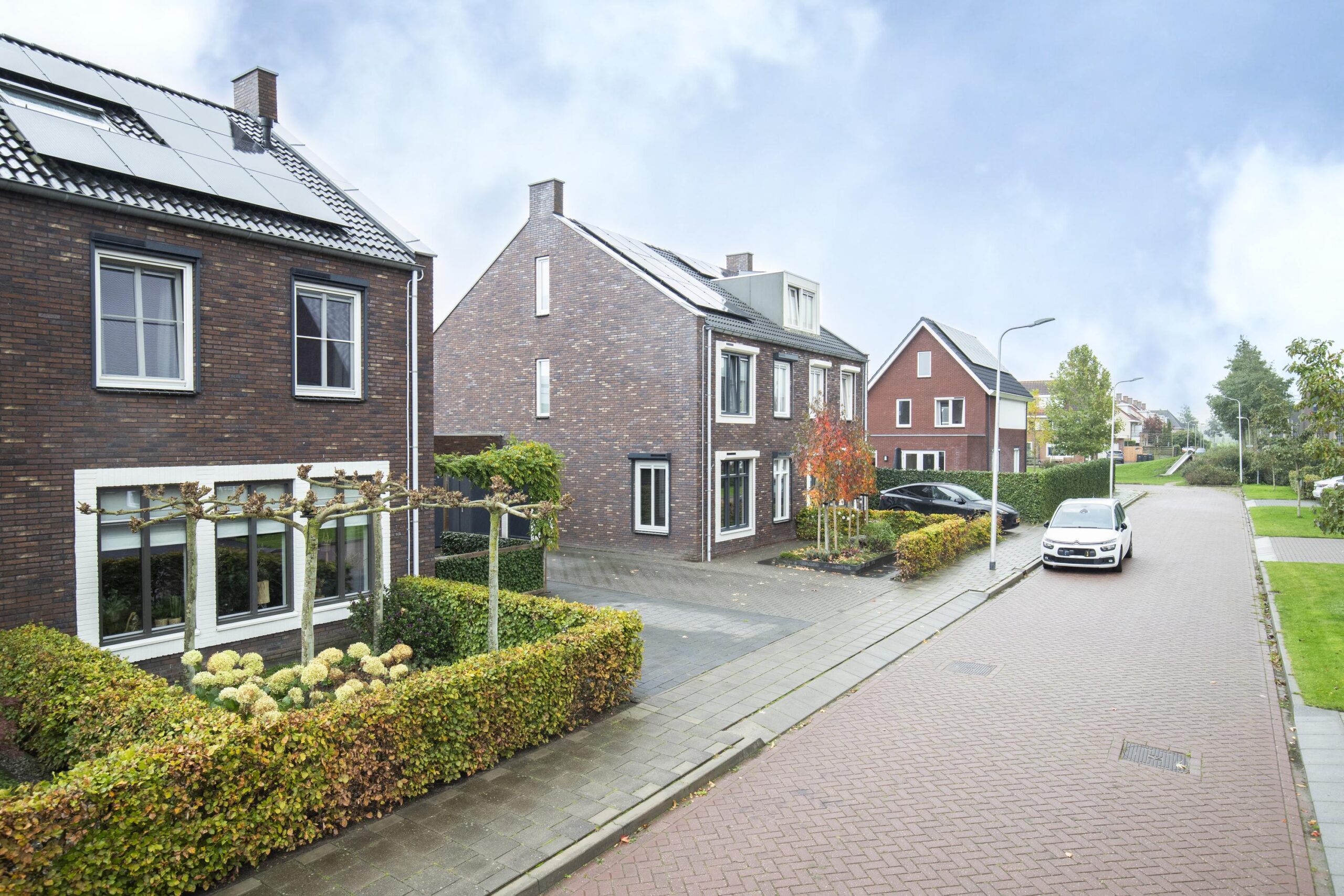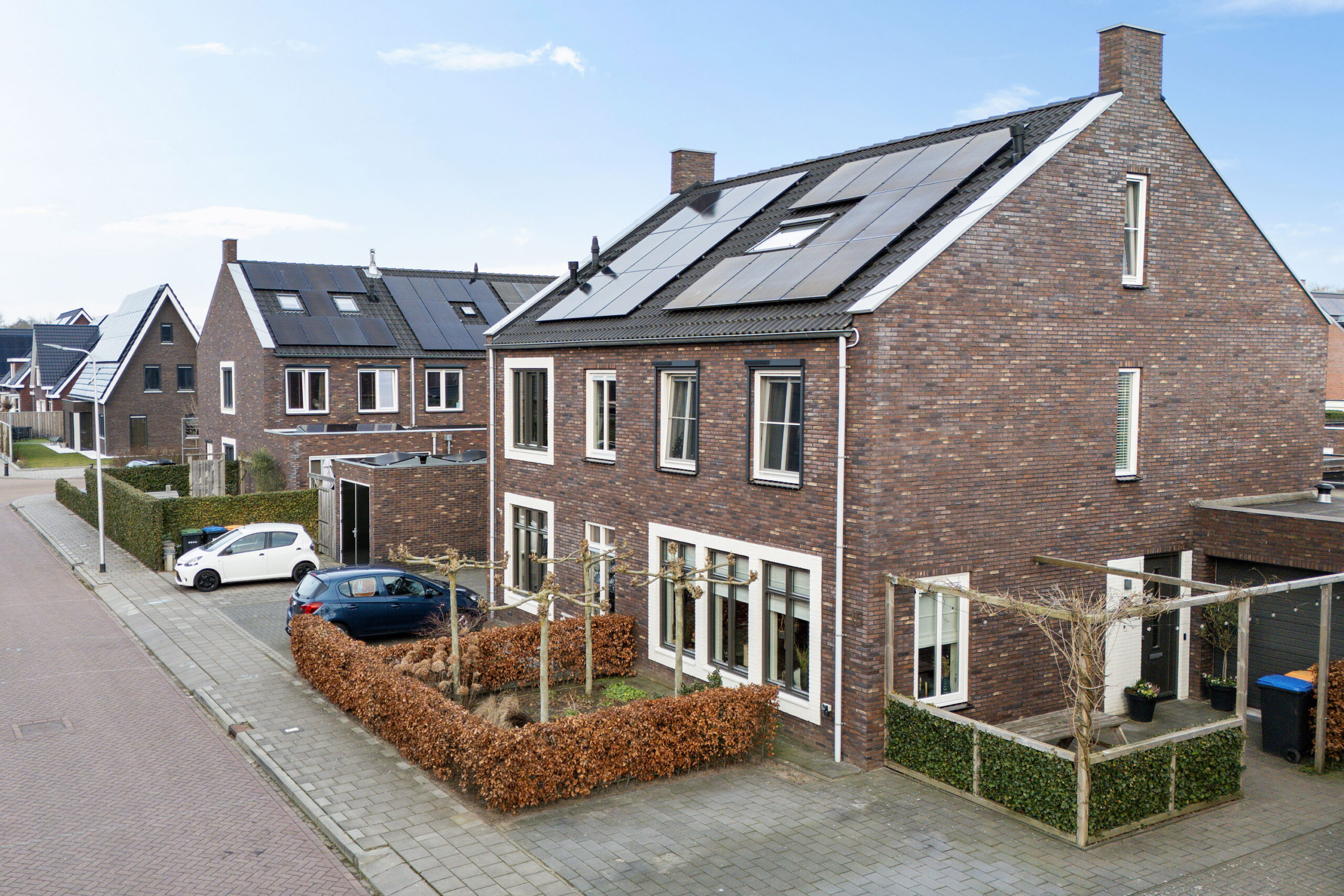 Op de eerste verdieping vind je drie slaapkamers, een ruime badkamer en een aparte toiletruimte. De badkamer is modern uitgevoerd en voorzien van een kunststof ligbad, een badkamermeubel met dubbele wastafel, vloerverwarming, een designradiator, inbouwspots in het plafond en een grote inloopdouche. De slaapkamers zijn voorzien van screens. Screens helpen om warmte en fel zonlicht buiten te houden, wat zorgt voor een aangenaam binnenklimaat en extra privacy zonder dat je het daglicht volledig verliest.