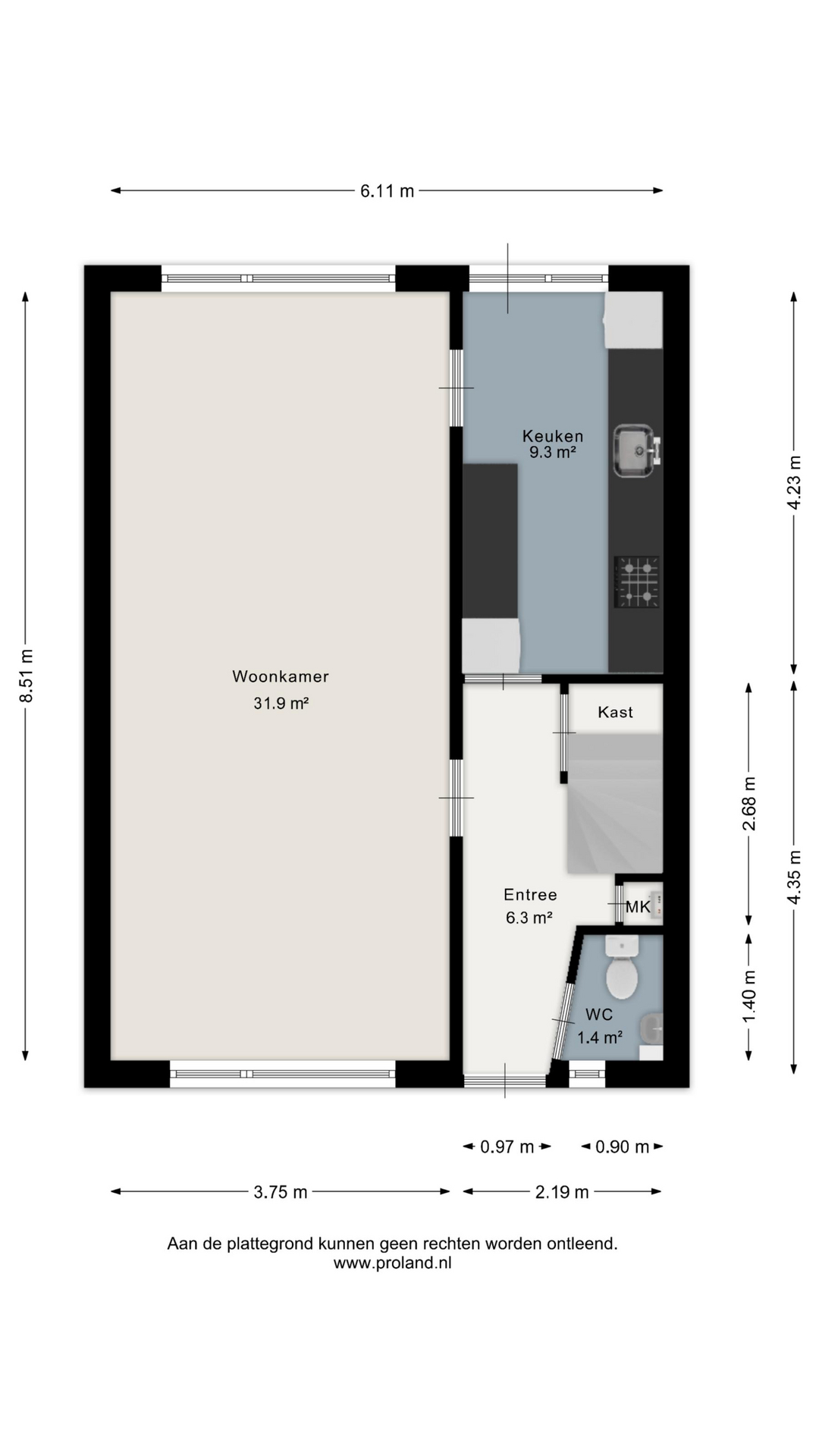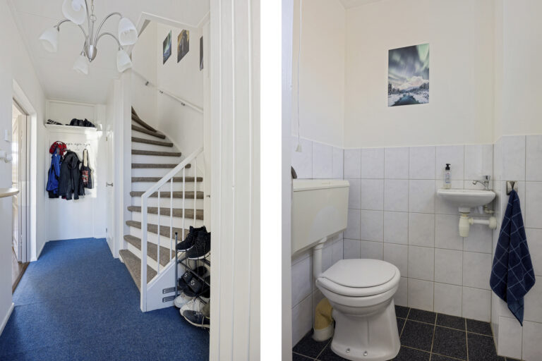 Bij binnenkomst via de entree kom je in een nette hal met meterkast, toiletruimte en de trapopgang naar de verdieping. Onder de trapopgang vind je een ruime trapkast voor opslag. Vanuit hier loop je door naar de lichte woonkamer. Deze ruimte is opvallend royaal en dankzij de grote raampartijen aan zowel de voor- als achterzijde valt er veel daglicht binnen, wat zorgt voor een prettige en open sfeer. De woonkamer biedt voldoende ruimte voor een comfortabele zithoek en een gezellige eethoek.