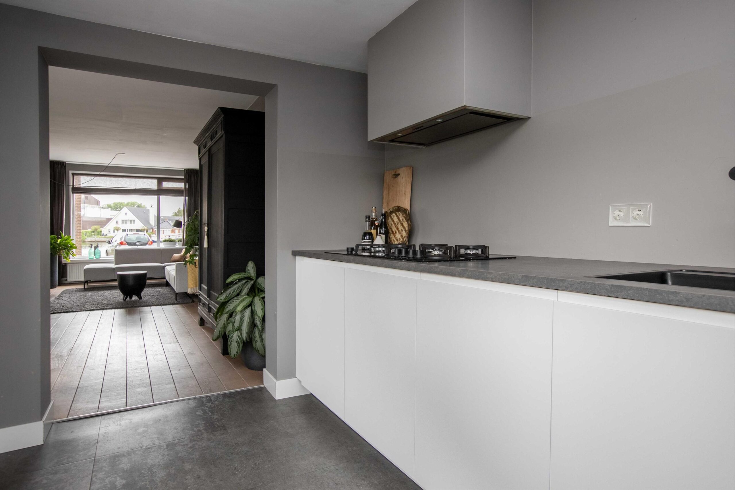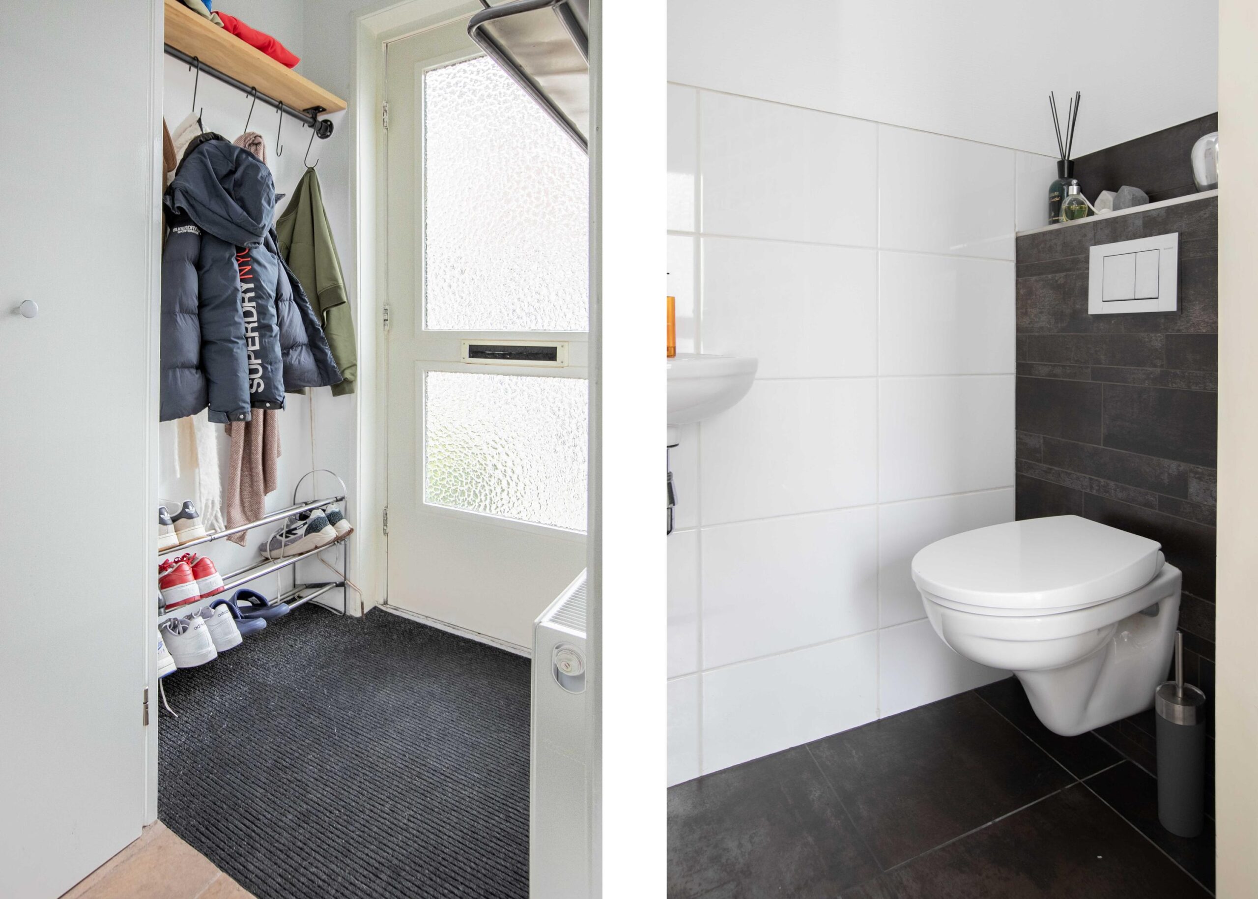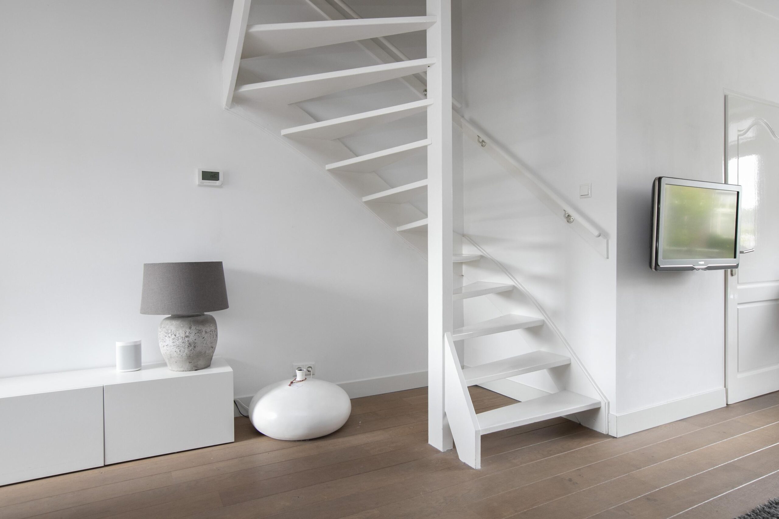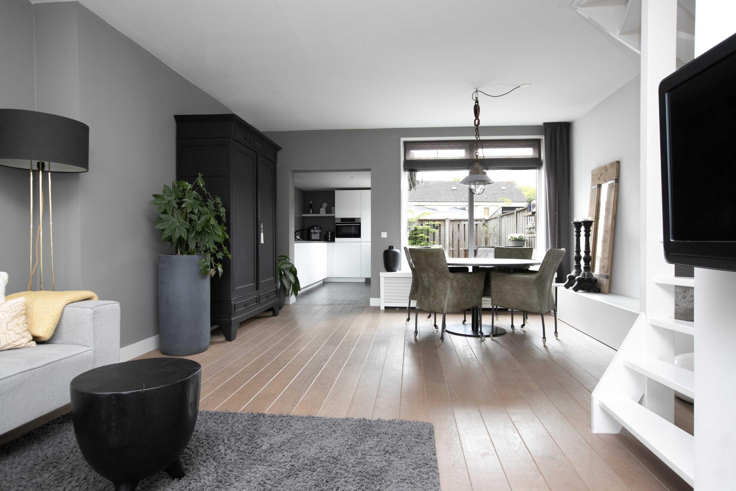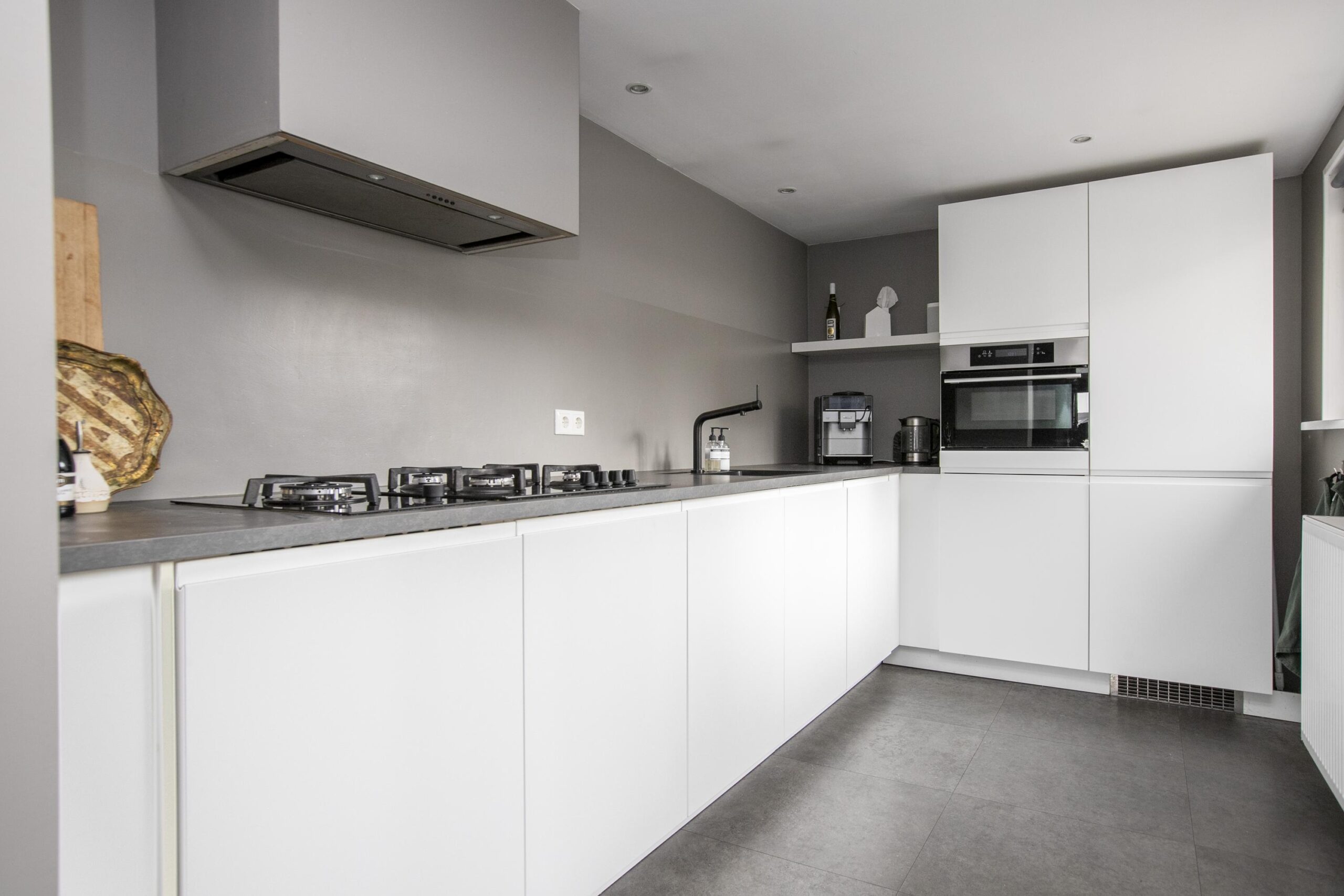 Je komt binnen via de hal met meterkast en toiletruimte met zwevend toilet. De lichte ruime woonkamer valt direct op door de sfeervolle eikenhouten vloer en de strakke, gestucte wanden en plafonds. Aan de achterzijde van de woning is in de uitbouw de keuken gesitueerd. Deze moderne keuken (vernieuwd in 2018) heeft een rustige uitstraling dankzij de lichte kleuren en biedt alles wat je nodig hebt: een groot gasfornuis met wokbrander, combi-oven, koelkast, vriezer, vaatwasser en een afzuiging. Vanuit de keuken loop je zo de tuin in – ideaal tijdens een zomerse avond of het weekend.