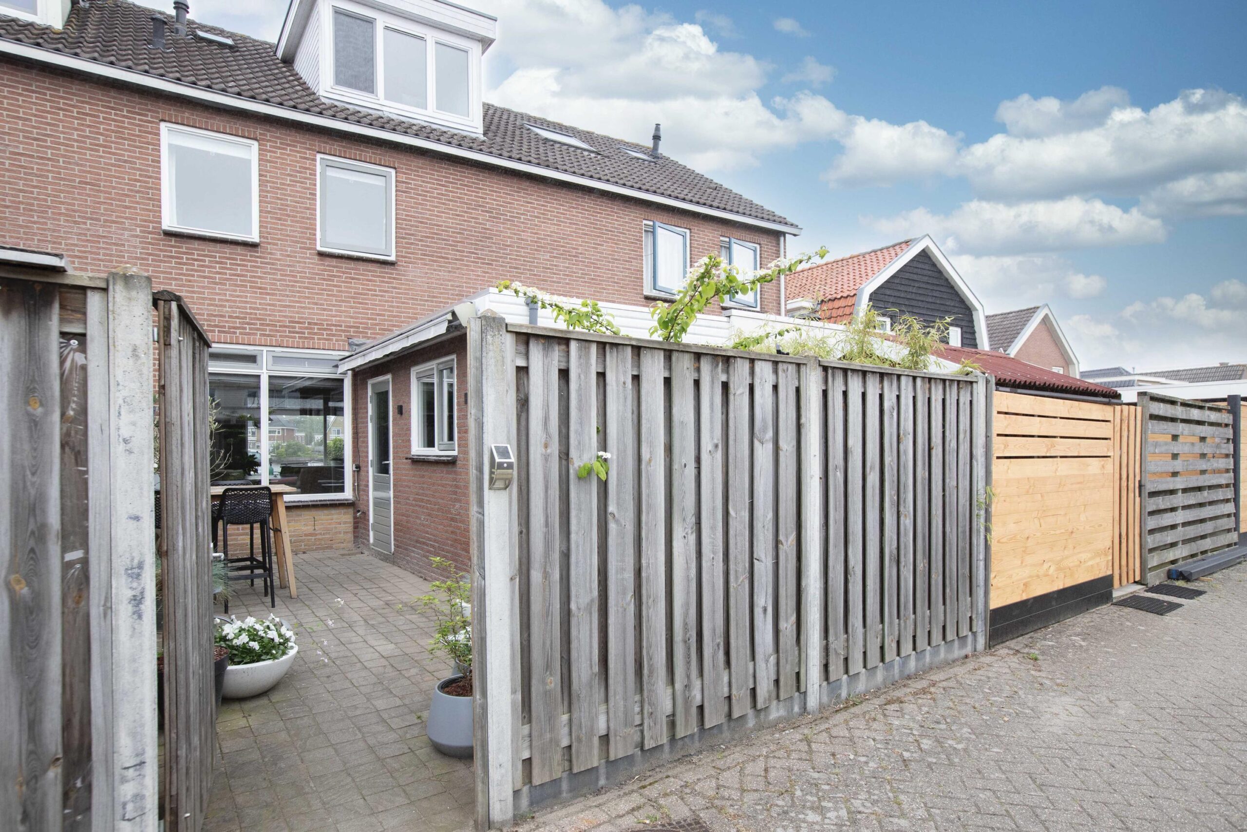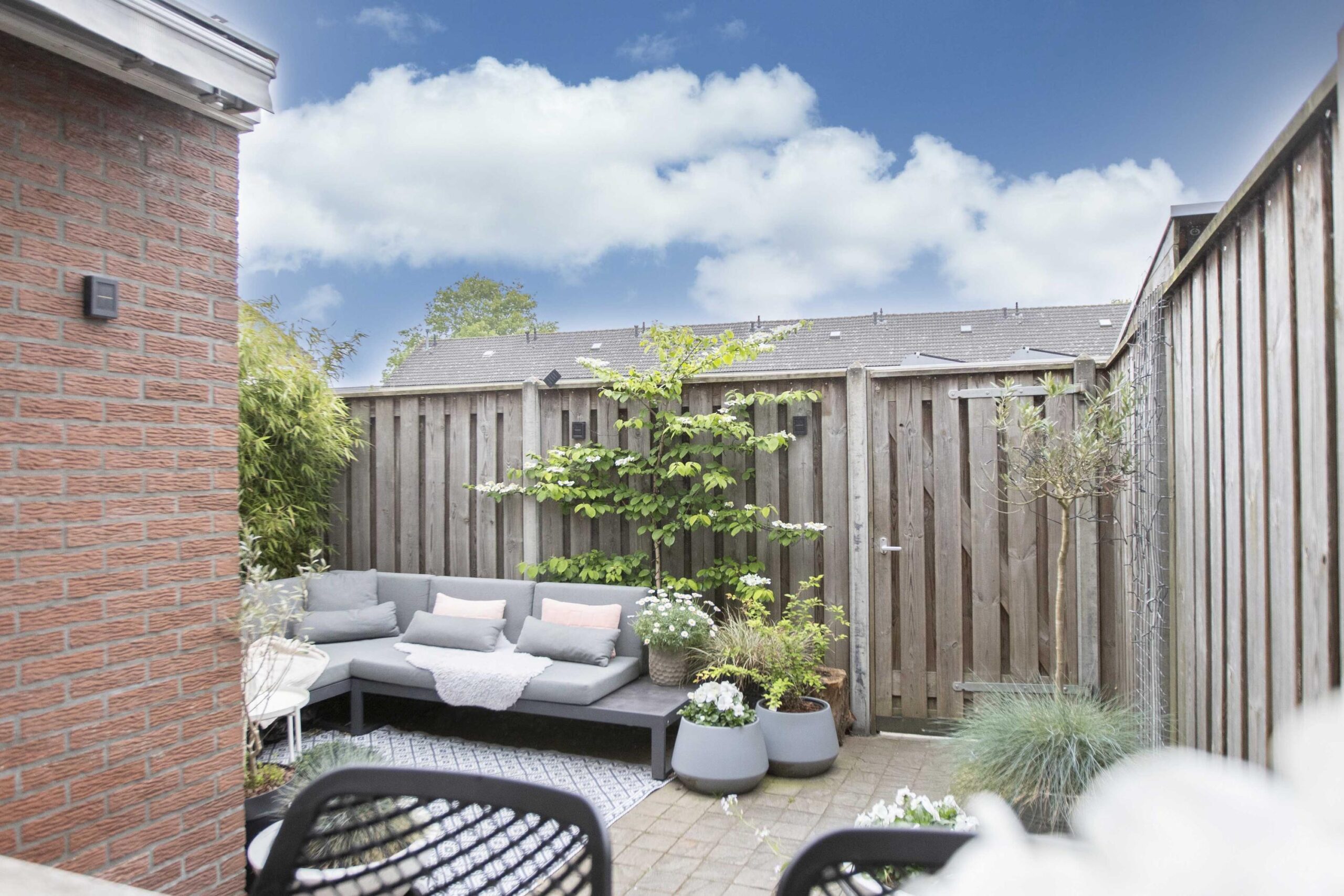 De achtertuin is gelegen op het zuidoosten, wat betekent dat je hier kunt genieten van de zon vanaf de ochtend tot in de namiddag. De tuin is knus ingericht en heeft een achterom. Direct achter de tuin bevindt zich een openbaar, doodlopend terrein met parkeergelegenheid, een speelweide voor kinderen én de vrijstaande garage. Hier kun je met gemak je auto, motor of hobbyspullen kwijt. En: het dak van de garage biedt een perfecte mogelijkheid voor bijvoorbeeld het plaatsen van zonnepanelen.