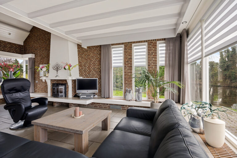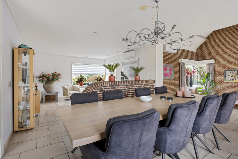 De woonkamer is zonder twijfel het hart van de woning. Een royale leefruimte waar licht, ruimte en uitzicht samenkomen. Grote raampartijen zorgen voor een continue verbinding met de tuin en het water, waardoor buiten letterlijk onderdeel wordt van binnen. Hier ervaart u elk moment van de dag een andere sfeer: van frisse ochtenden met zacht licht tot lange, warme avonden waarin de zon laag over het water schijnt. De indeling biedt alle ruimte voor een comfortabele zithoek én een royale eetplek, ideaal voor zowel ontspannen wonen als gezellig samenzijn. De aanwezigheid van airconditioning in zowel de woon- als eetkamer zorgt daarbij voor een aangenaam binnenklimaat, ongeacht het seizoen. Daarnaast wordt de begane grond verwarmd door middel van vloerverwarming.