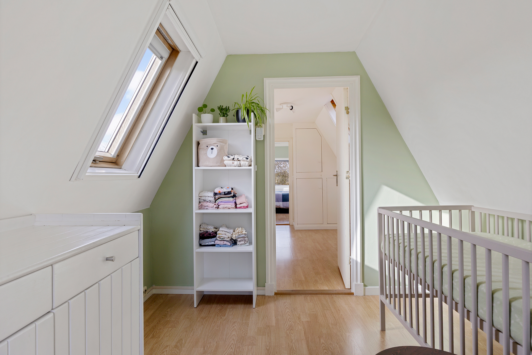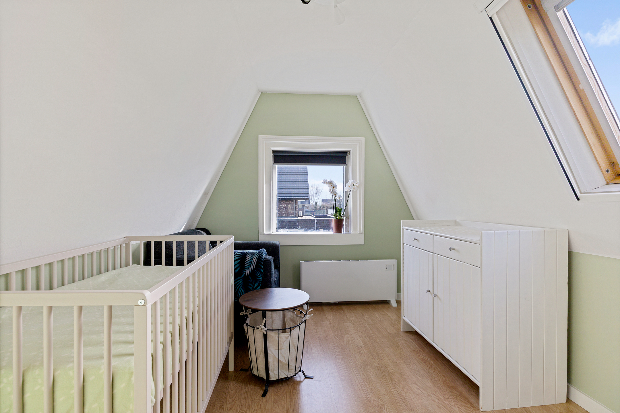 Er is een praktische vliering aanwezig, ideaal voor extra bergruimte.