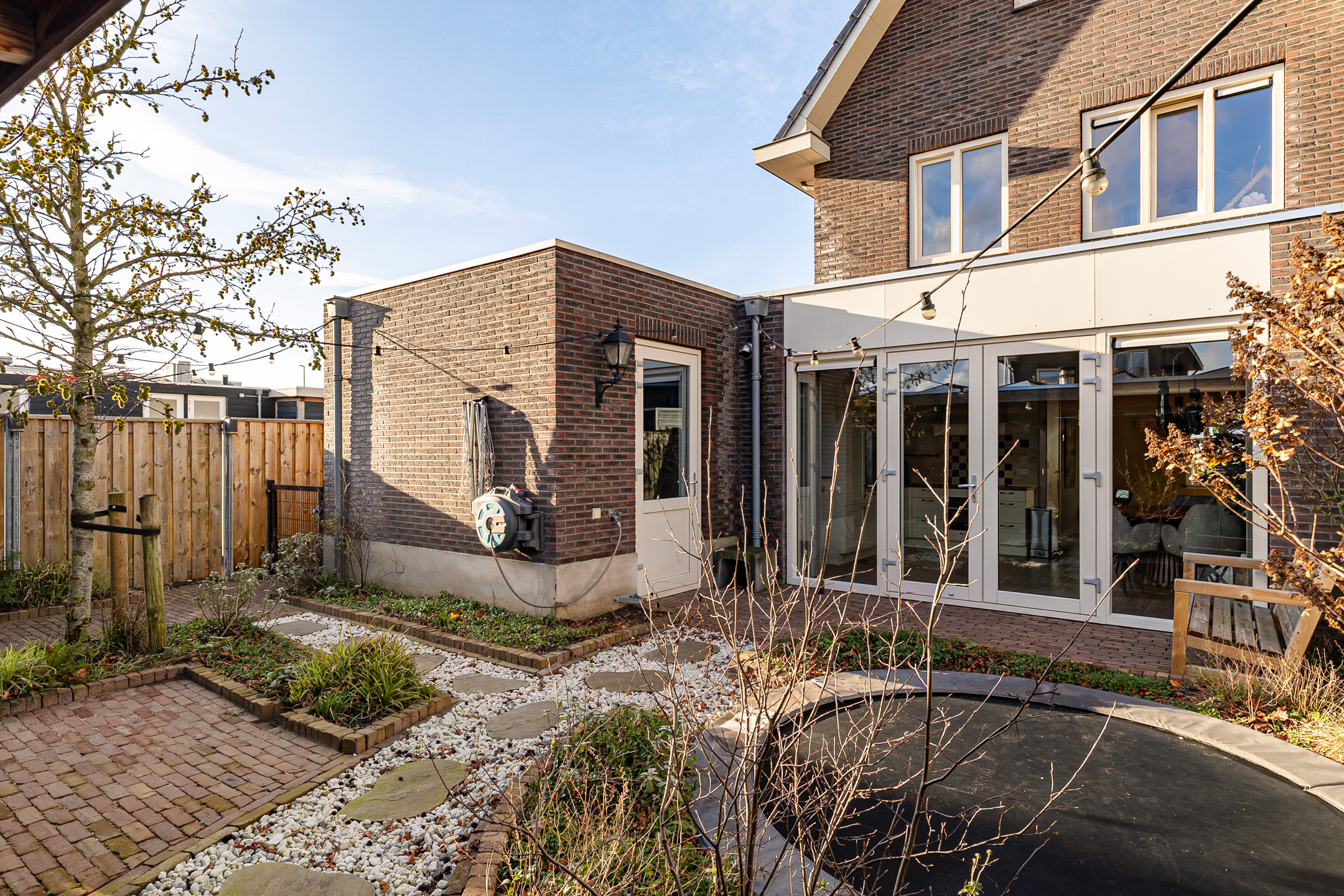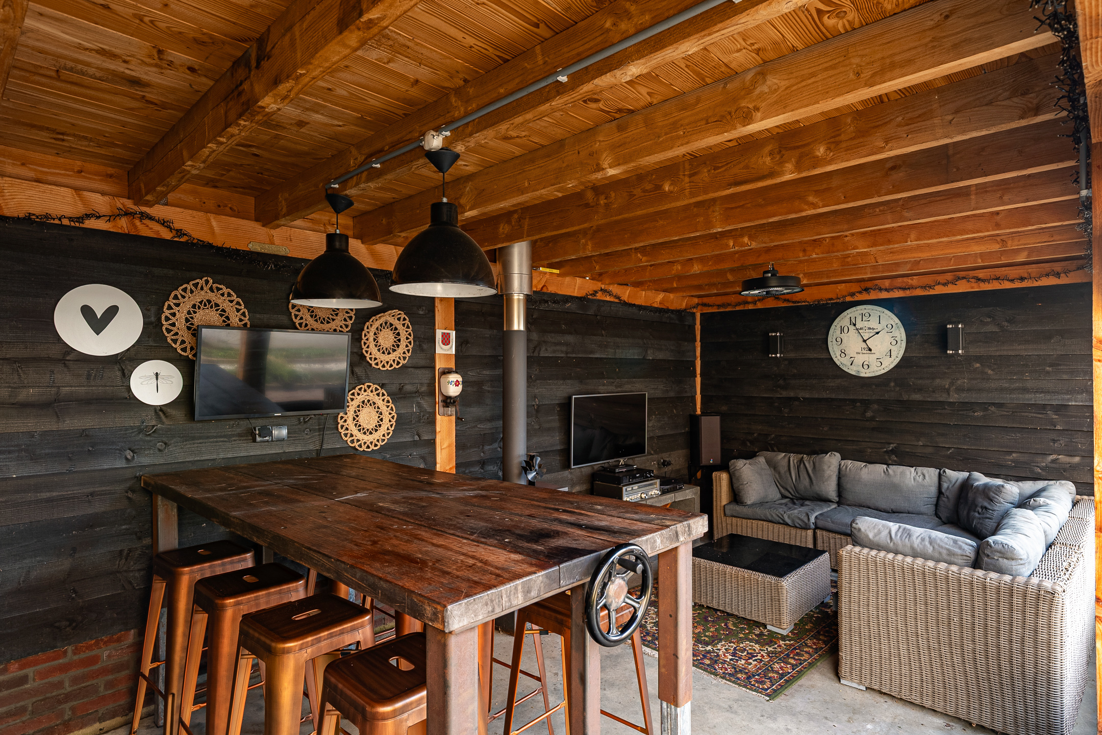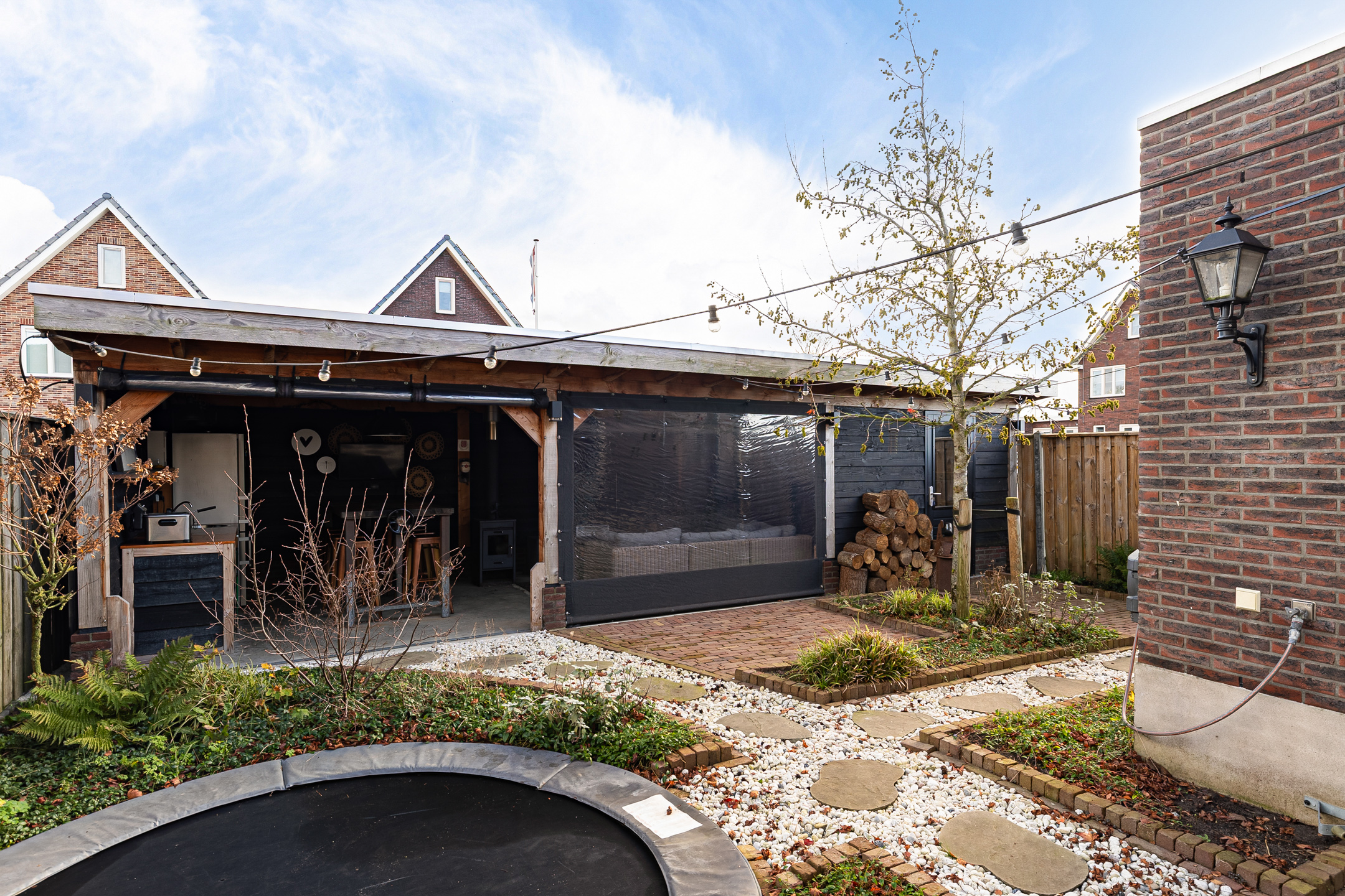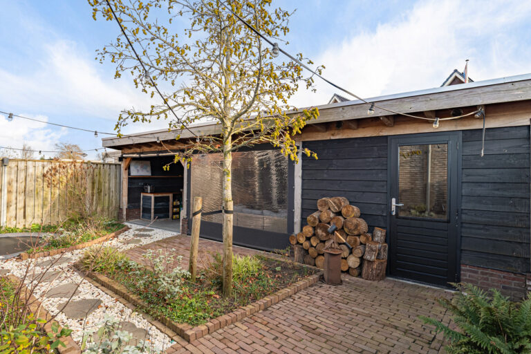 De achtertuin (met achterom) is een heerlijke plek om te ontspannen. De tuin beschikt over een grote overkapping met water- en stroomvoorzieningen. Dit maakt het een ideale buitenruimte om het hele jaar door te genieten – van lange zomeravonden tot knusse wintermomenten.