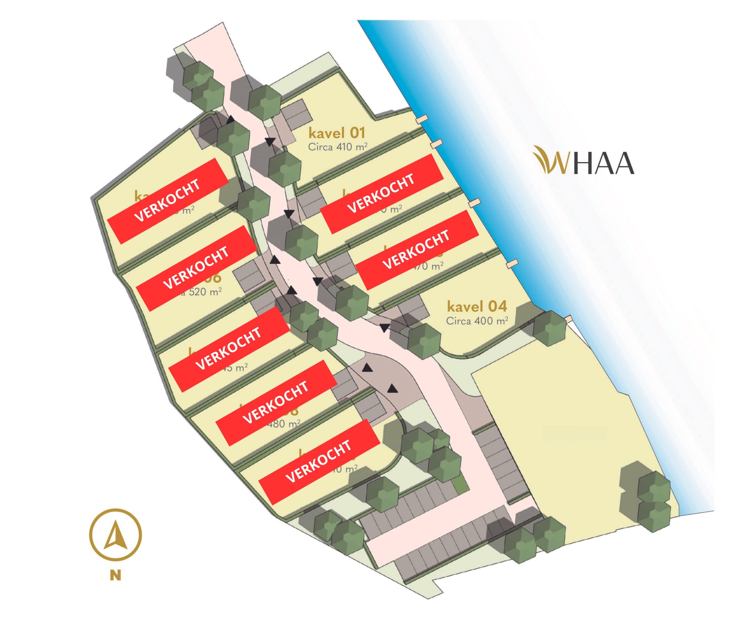 Kavels 1 t/m 4 zijn direct gelegen aan de ‘Whaa’, dus OPEN VAARWATER.
