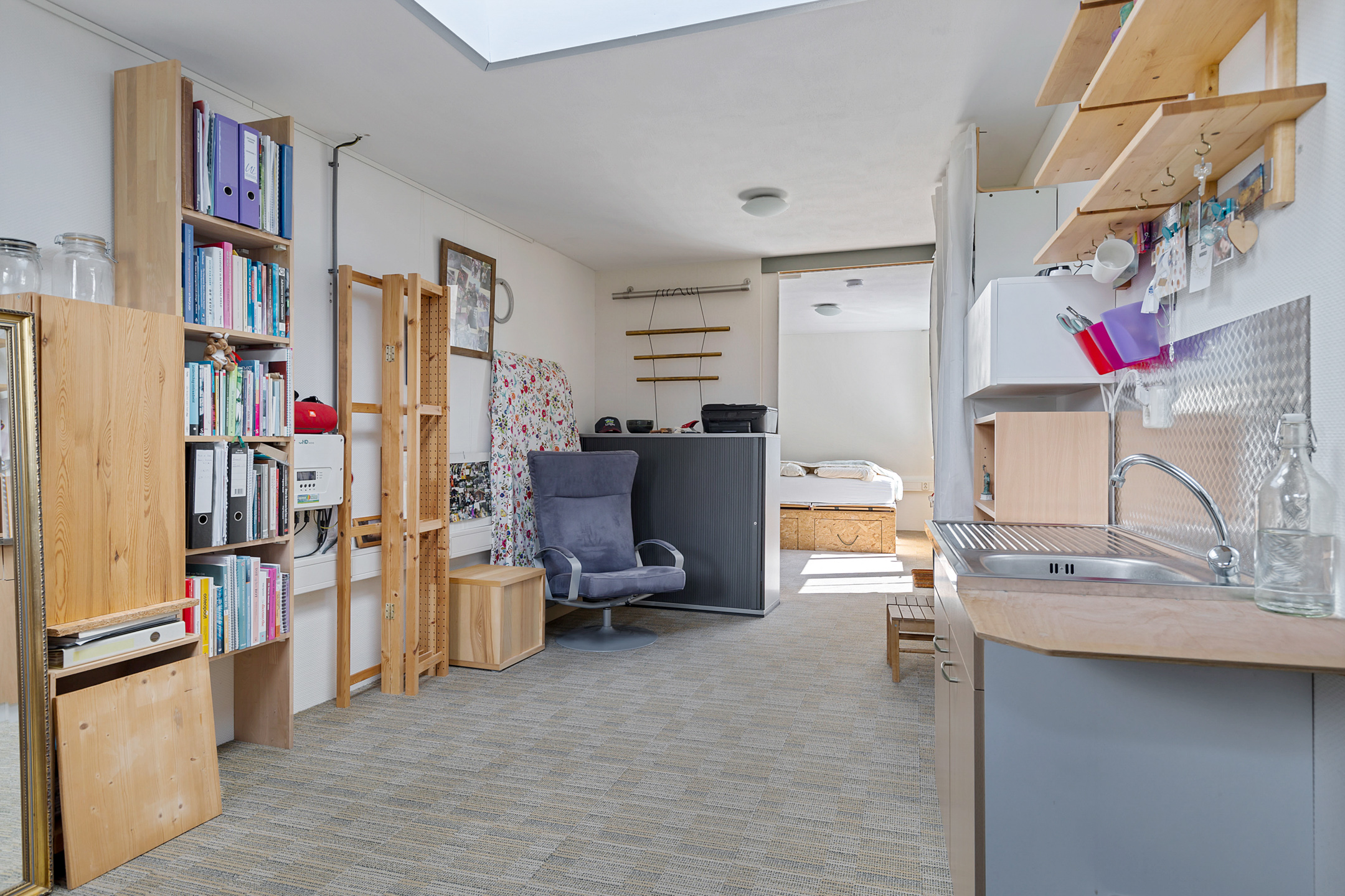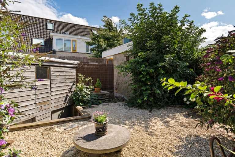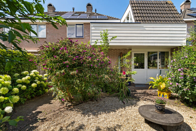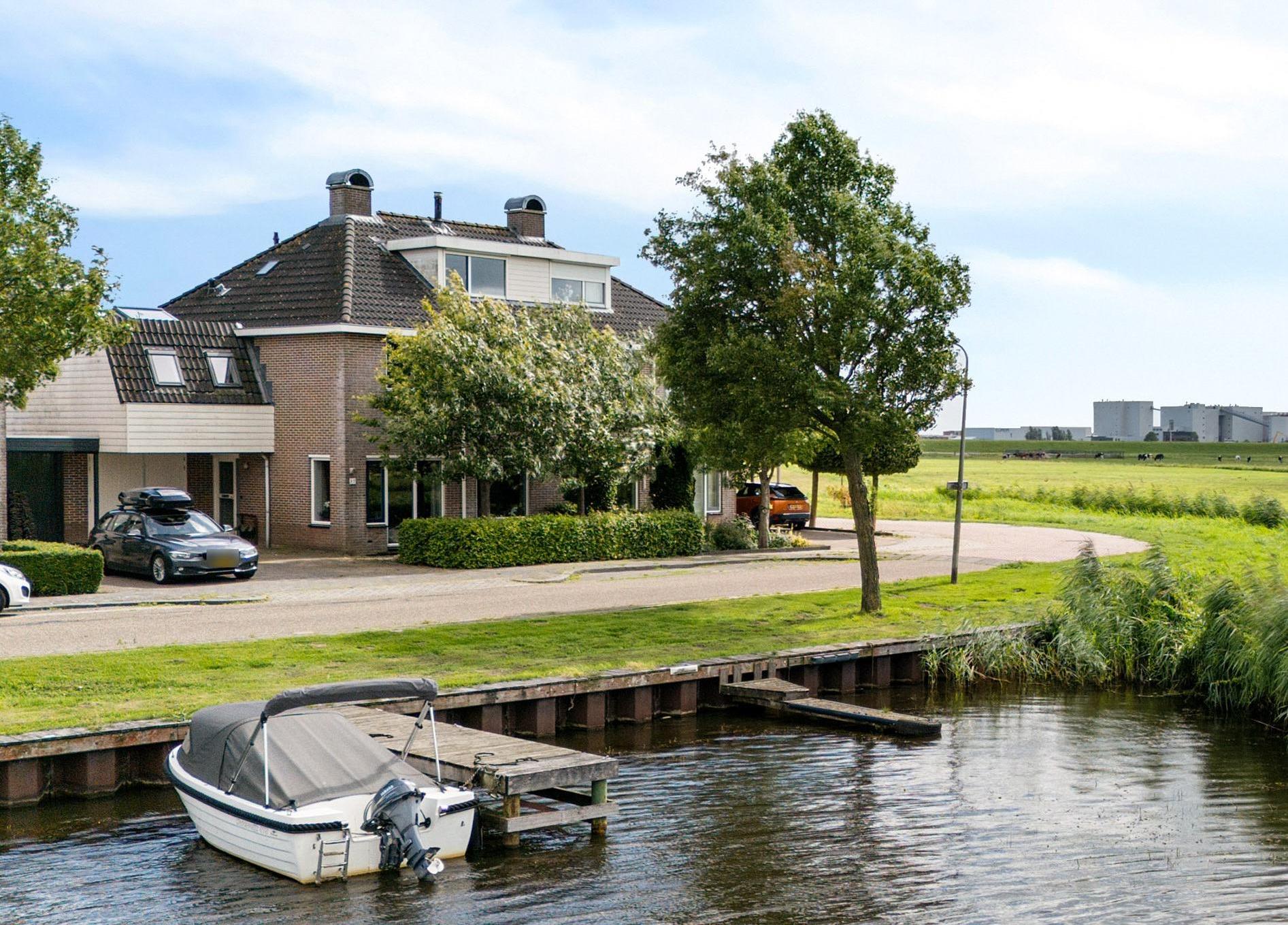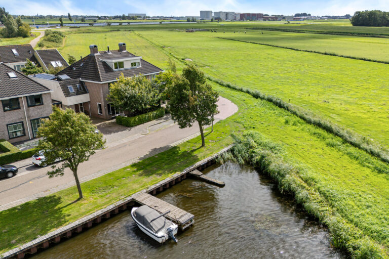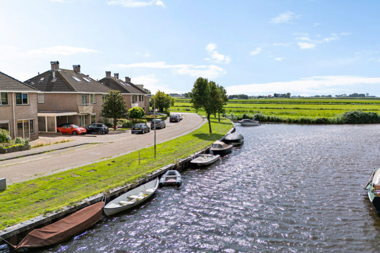 De achtertuin heeft een gunstige zonligging en biedt volop mogelijkheden om te ontspannen. Bovendien staat hier een houten ruimte die je naar eigen wens kunt gebruiken – bijvoorbeeld als praktische buitenberging, of juist als sfeervolle plek voor een sauna om heerlijk tot rust te komen. Aan de voorzijde geniet je van een uitzicht over het vaarwater – een unieke combinatie die je niet vaak tegenkomt.