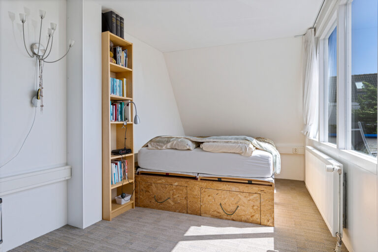 De tweede verdieping is voorzien van een dakkapel en Velux-ramen, waardoor ook hier volop licht en ruimte is. Hier bevindt zich de vijfde slaapkamer of werkruimte, naast een ruime voorzolder met de opstelling van de cv-installatie. Extra opbergruimte is er meer dan genoeg, want achter de knieschotten kun je gemakkelijk al je spullen kwijt.