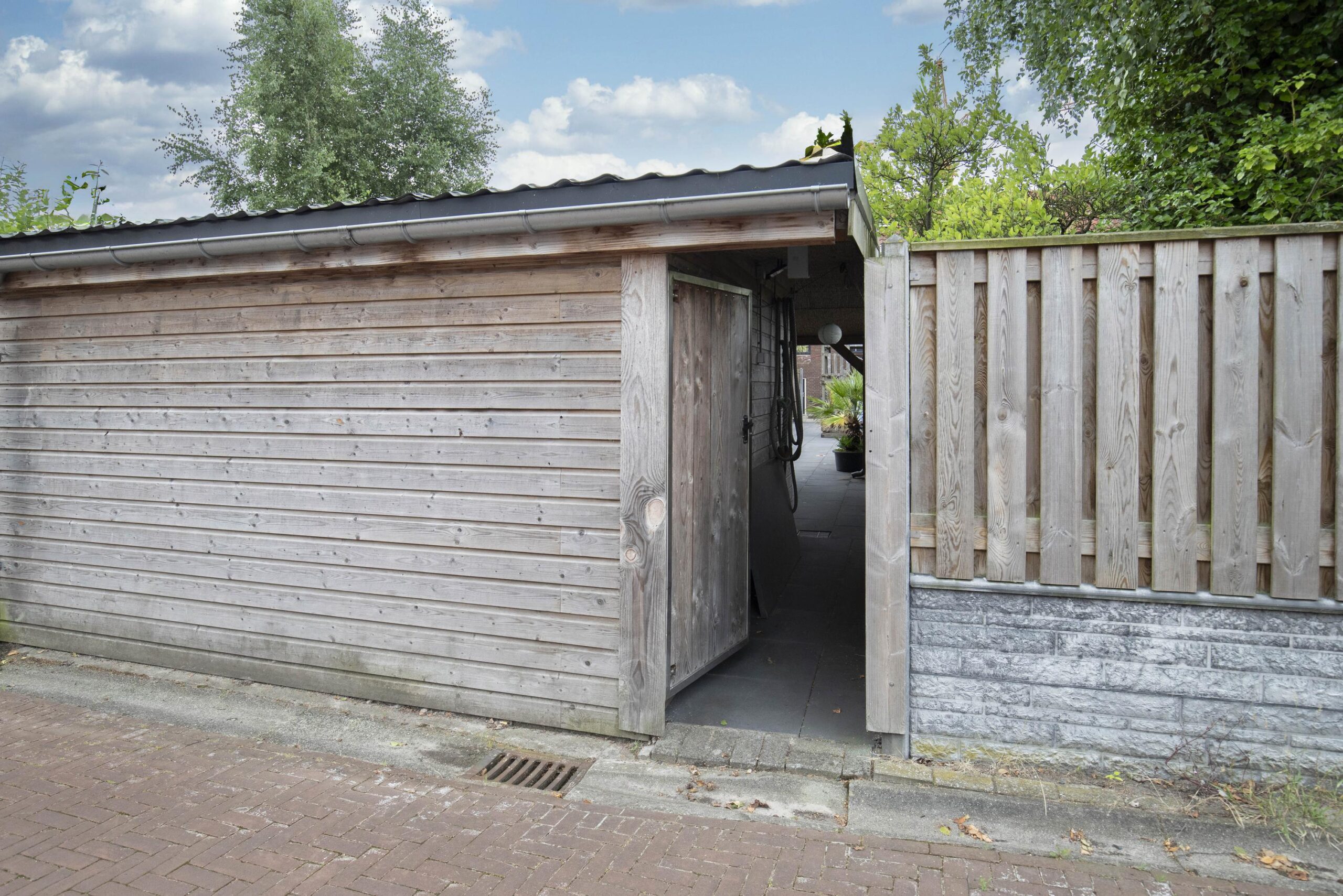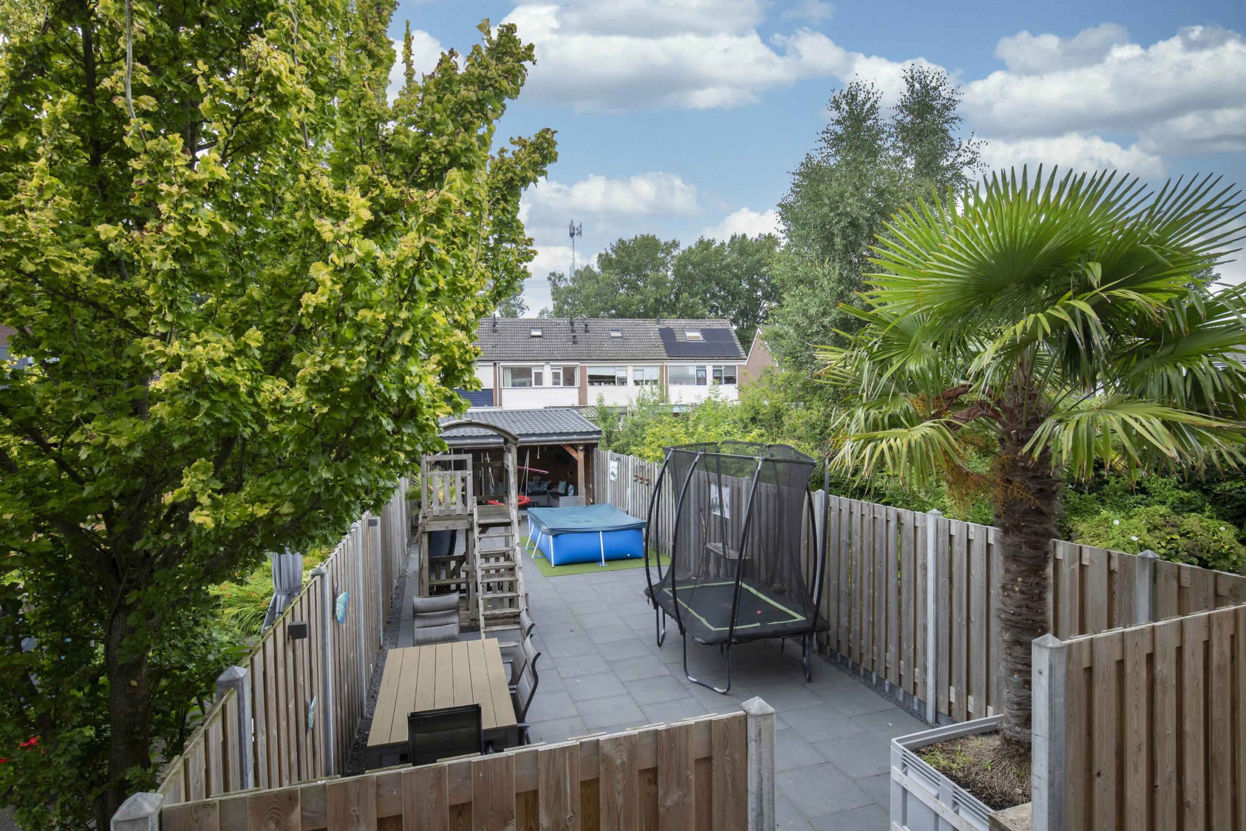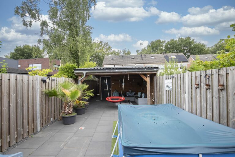 De achtertuin is een echte verrassing: fraai aangelegd en voorzien van een houten berging/ overkapping. Een heerlijke plek om te genieten van de zon, te tuinieren of lange zomeravonden door te brengen met vrienden en familie. Dankzij het uitzicht vanuit de keuken heb je bovendien altijd contact met de tuin.