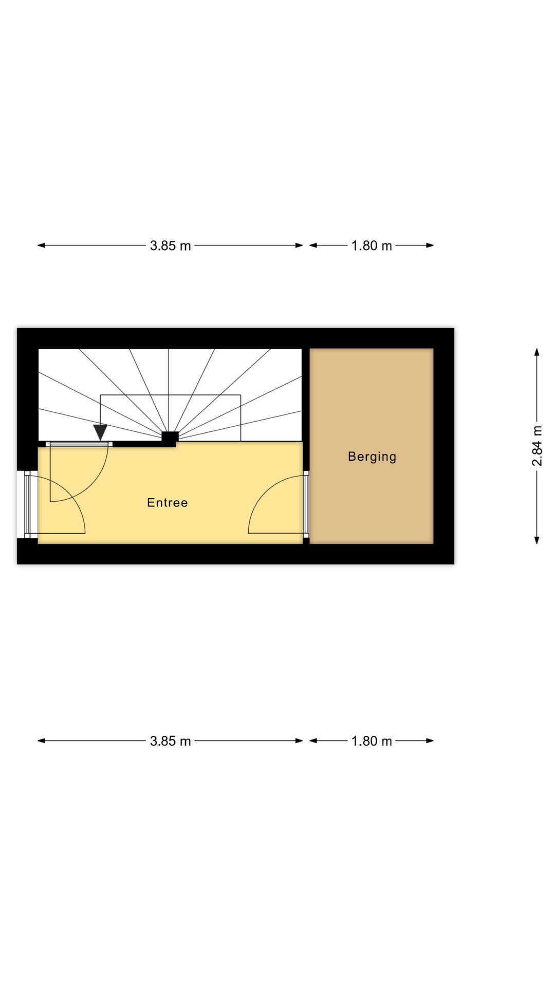 Bij binnenkomst via de voordeur betreedt u de entree op de begane grond. Hier vindt u de trapopgang naar het appartement, de meterkast, een trapkast en de inpandige berging. Het grote voordeel van een inpandige berging is dat u deze altijd kunt bereiken zonder dat u hiervoor naar buiten moet.